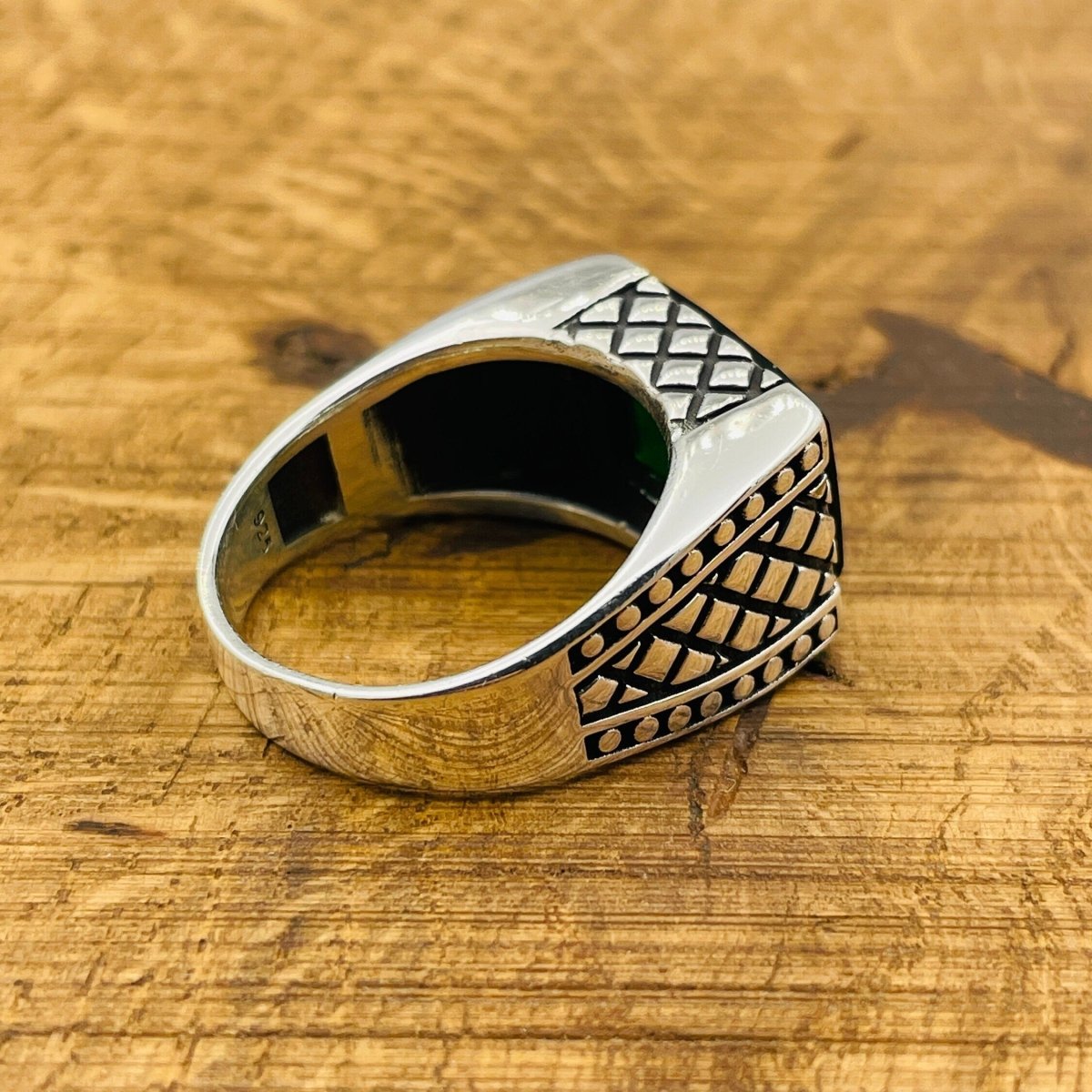 Elevate your style with this exquisite Mens Rectangle Green Zircon Stone Silver Ring crafted in Turkey. The rectangular design adorned with a captivating green zircon stone adds a touch of elegance to any outfit. Made with 925 sterling silver, this minimalist ring weighs around 12 grams, offering a comfortable fit. Whether as a gift for a husband or a special treat for yourself, each order is sent with a gift box and an extra surprise gift for a delightful unboxing experience. Explore our store for more unique handmade ring models to bring joy to your father, grandfather, boyfriend, lover, or husband. Embrace the uniqueness of this handcrafted item and enjoy an exceptional shopping experience.