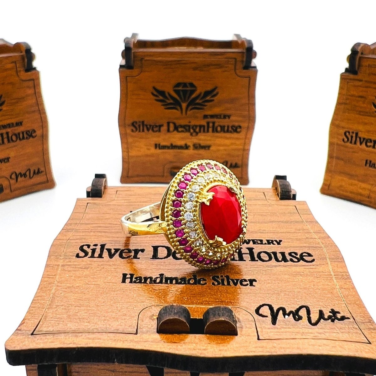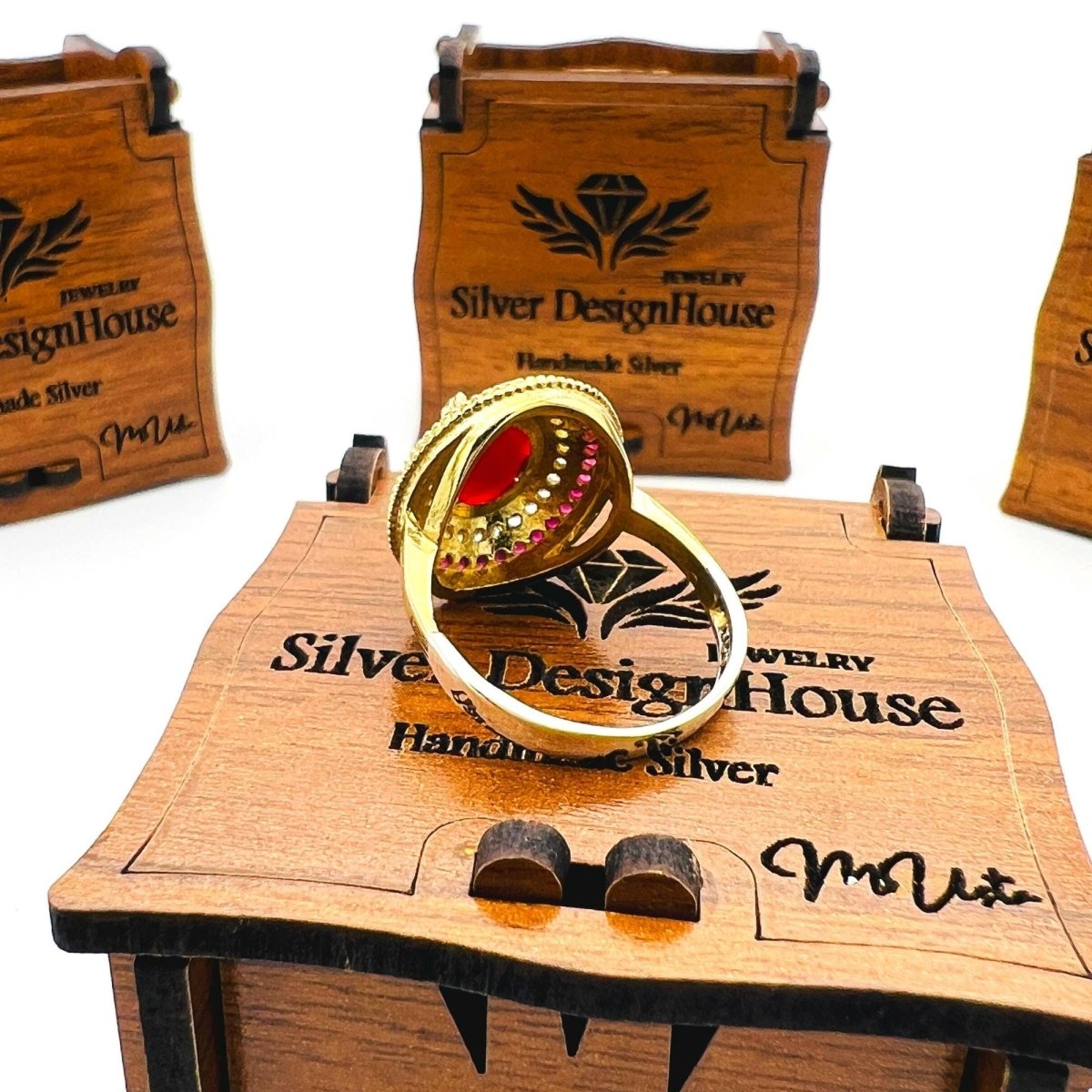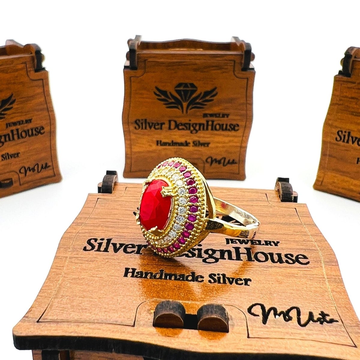 Elevate your style with this Women's Red Tourmaline Oval Stone Ring. The captivating red tourmaline stone adds a touch of elegance and charm to any outfit. Handcrafted with care, this ring showcases exceptional quality and craftsmanship with its Turkish handmade design.