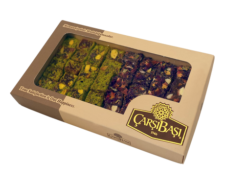 Carsibasi Premium Assorted Turkish Delight (Slivered Pistachio & Rose) - 500g Luxury Box