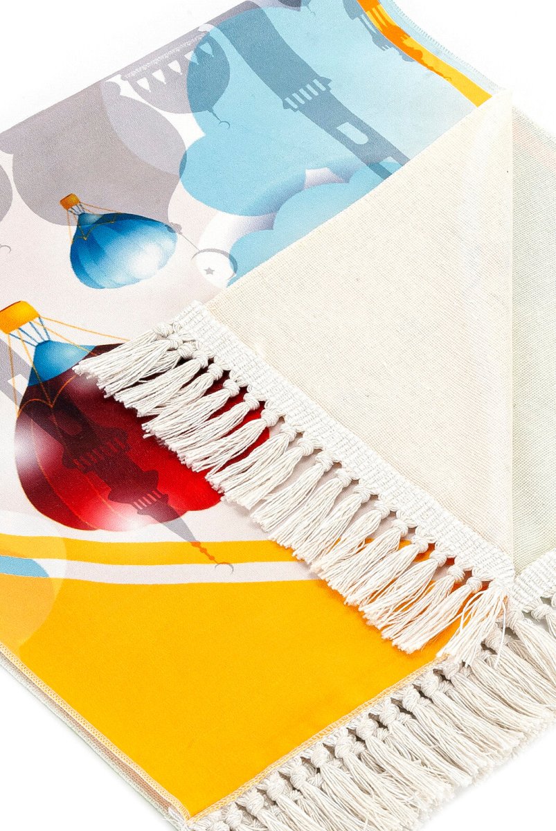 Digital Printed Children's Prayer Rug - with Baloon, Tractor and Mosque