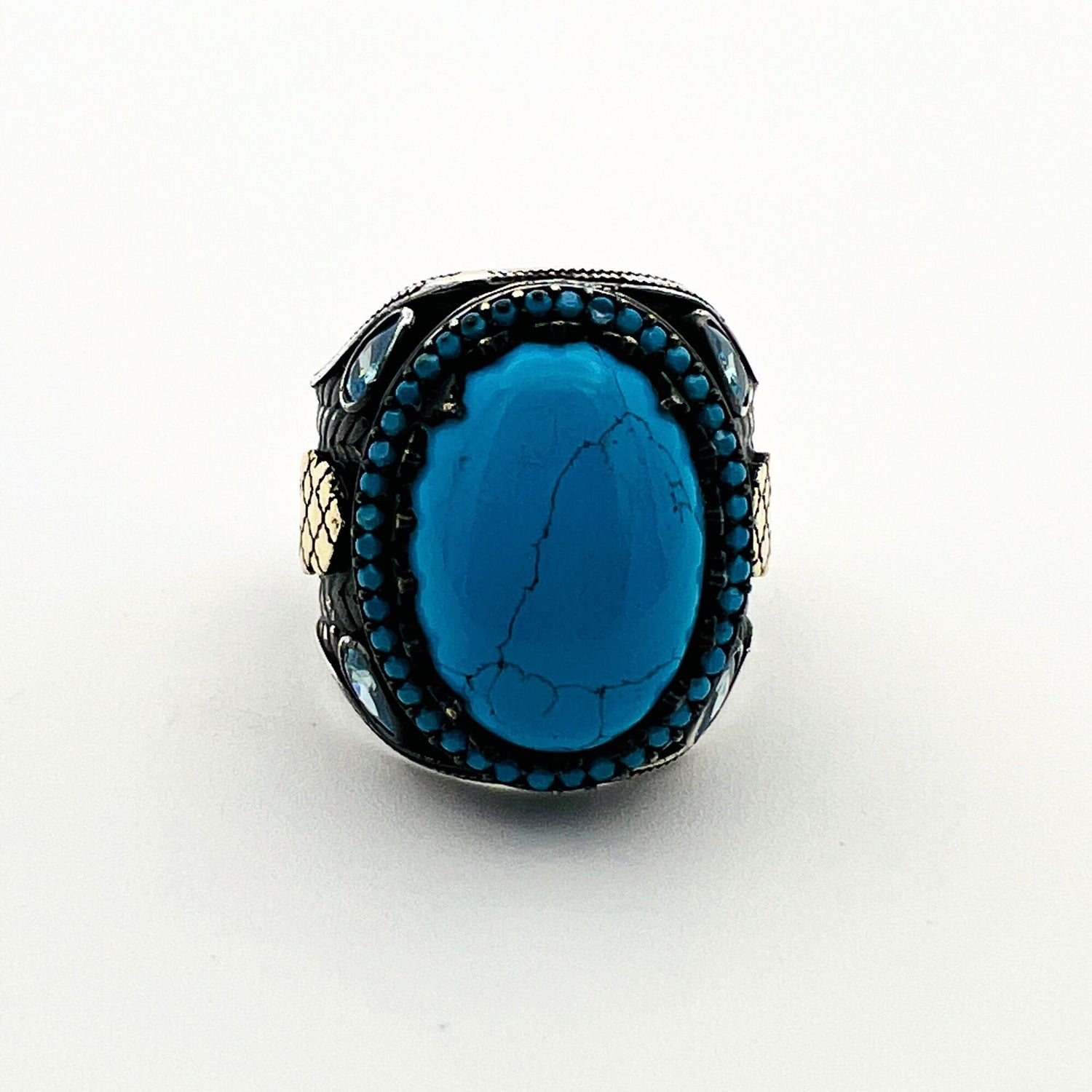 Men's Turquoise Oval Ring - Handmade Sterling Silver Jewelry