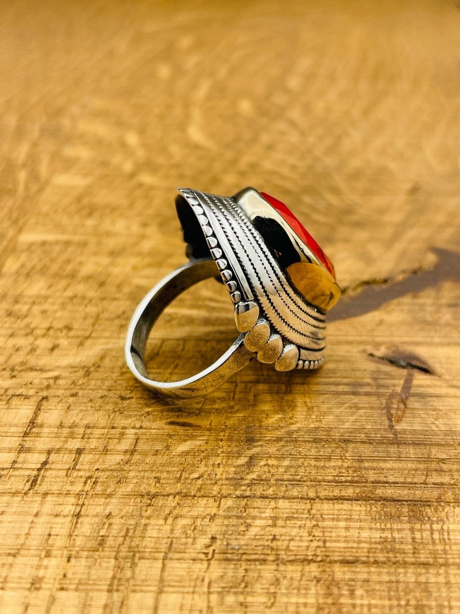 Features:- Handmade with a bold red Paraiba stone in a vintage design.