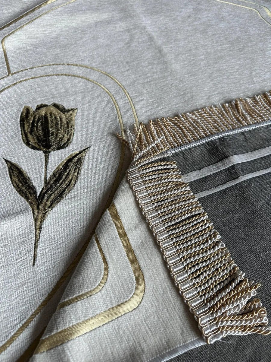 Experience peace and tranquility with this intricately designed prayer rug set for couples, featuring elegant rose embroidery and soft chenille texture.