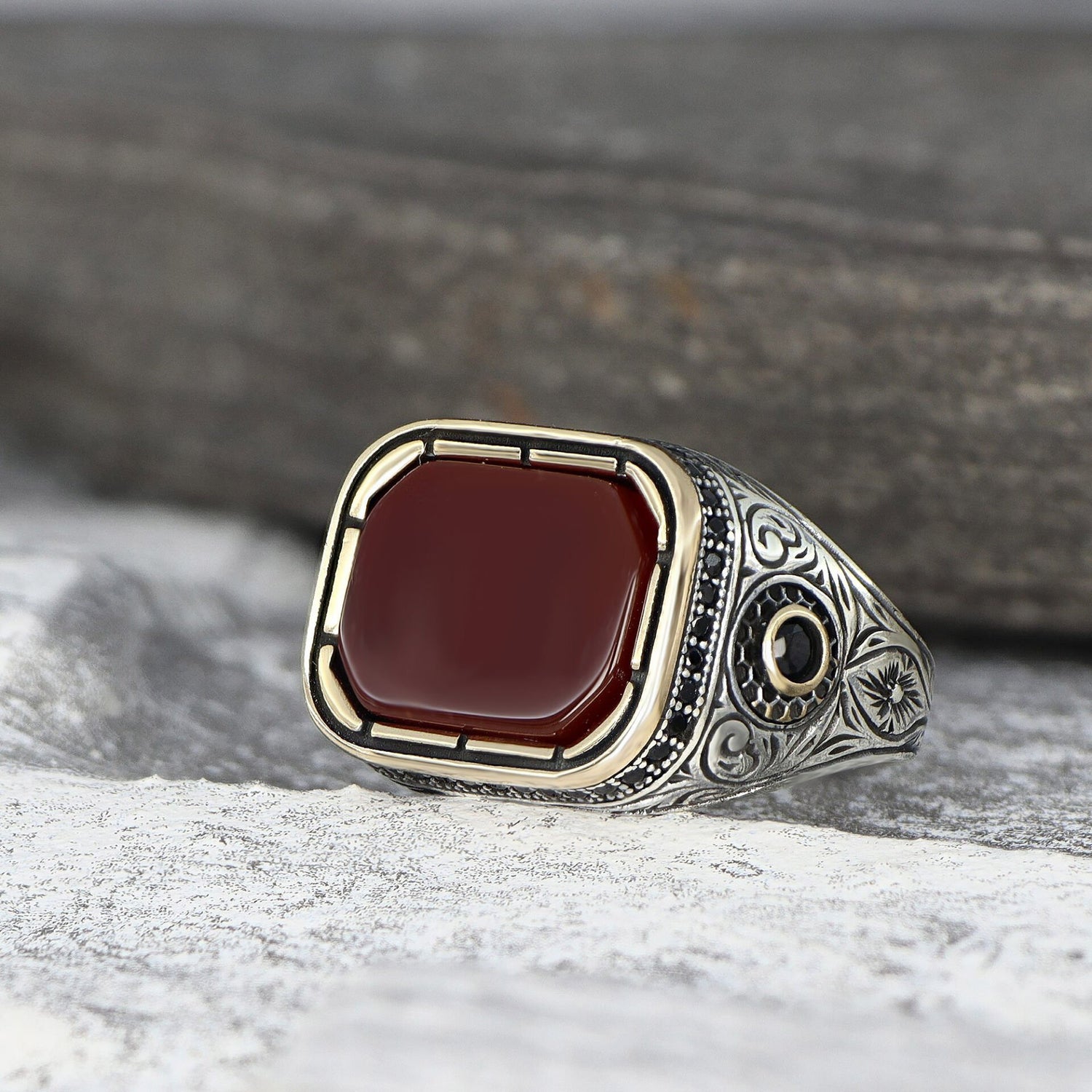 Tesbihevim | Men's Silver Ring with Agate Stone
