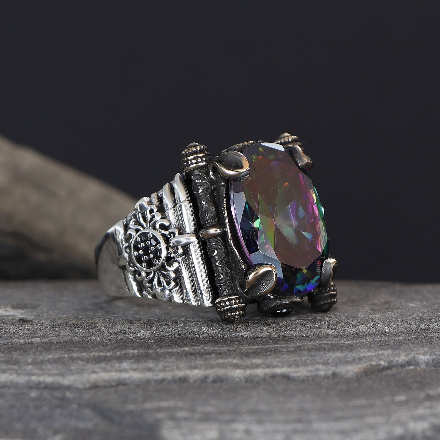 Tesbihevim | Men's Silver Ring with Mystic Topaz Stone - TryAladdin