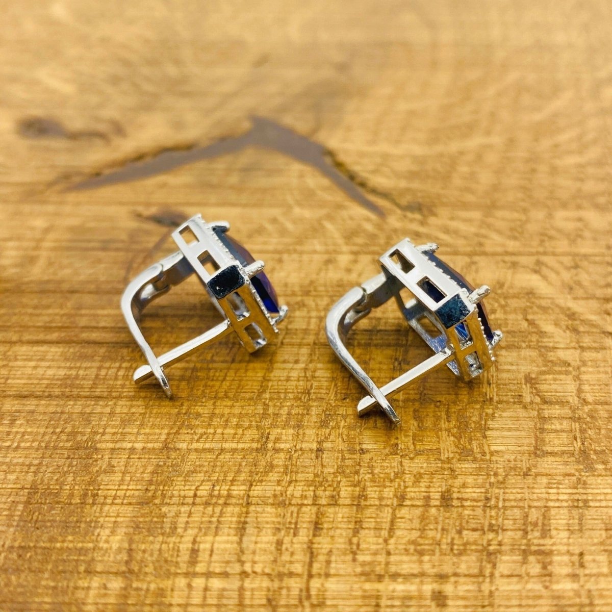 - Features Blue Sapphire stones in a ring, necklace, and earrings set.